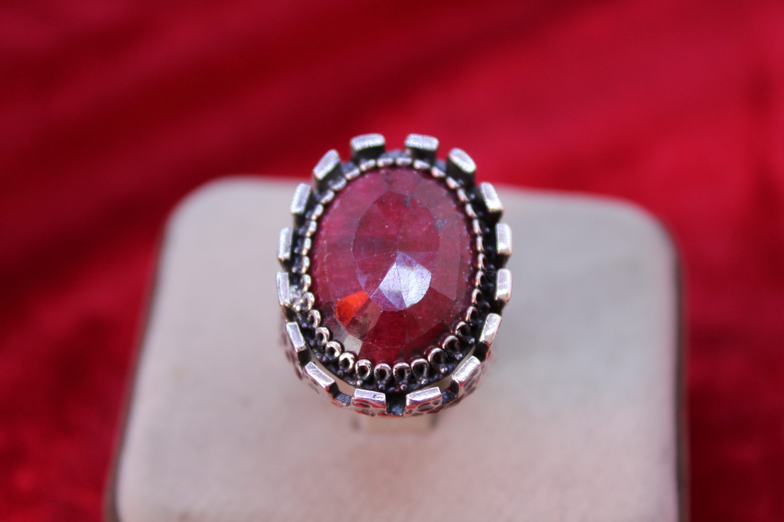 YAKUT TAŞLI GÜMÜŞ ERKEK YÜZÜK